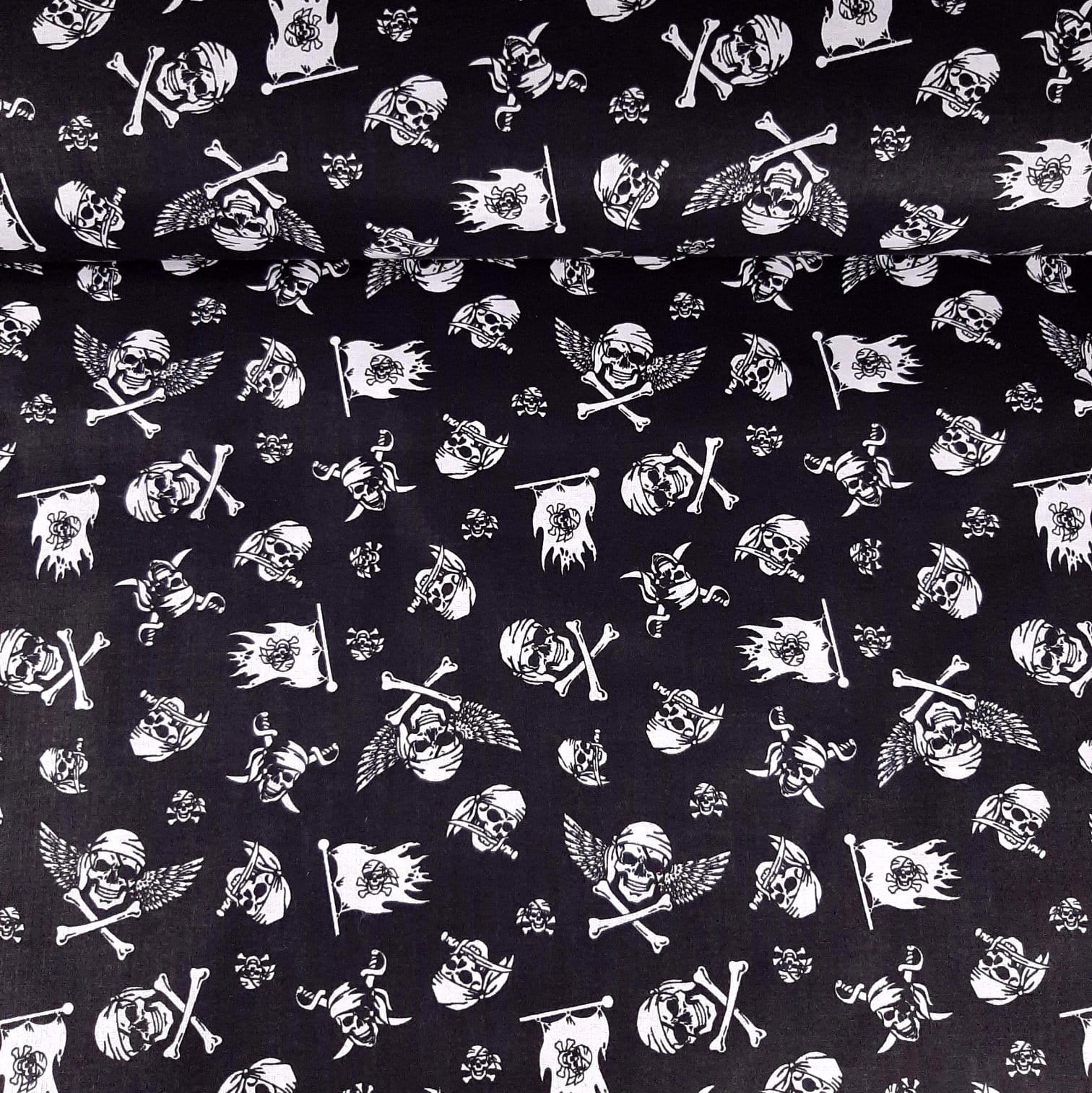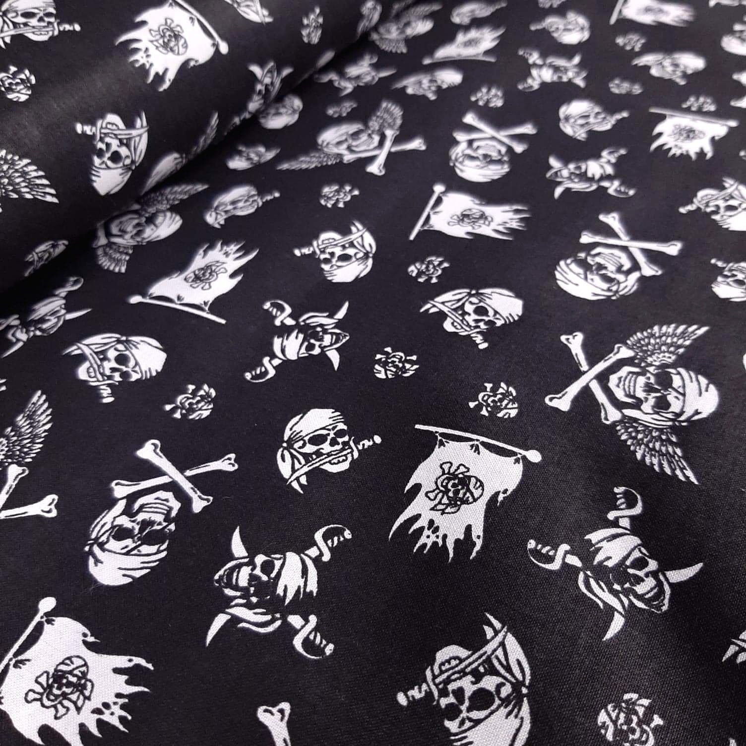10mb - Czaszki na czarnym - tkanina bawełniana