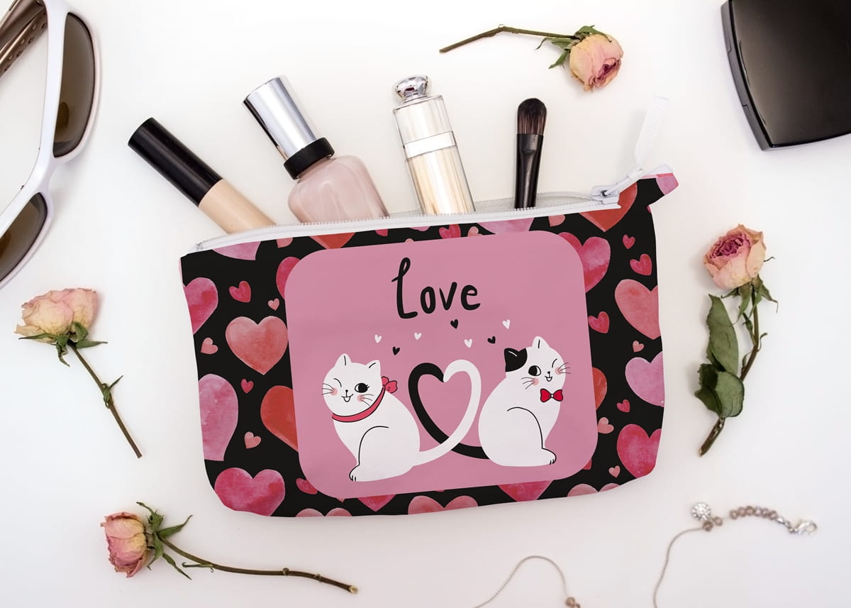 (tkanina z nadrukiem o konkretnym wymiarze określana również jako jako panel / formatka / kupon) Wizualizacja przedstawia kosmetyczkę, którą możesz samodzielnie uszyć z tej tkaniny