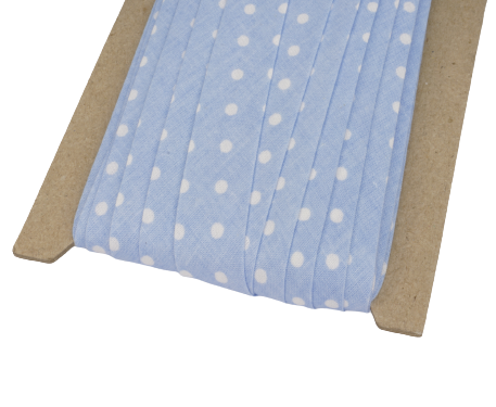 Lamówka bawełniana zaprasowana 18mm - 20 mb - BŁĘKITNA w groszki