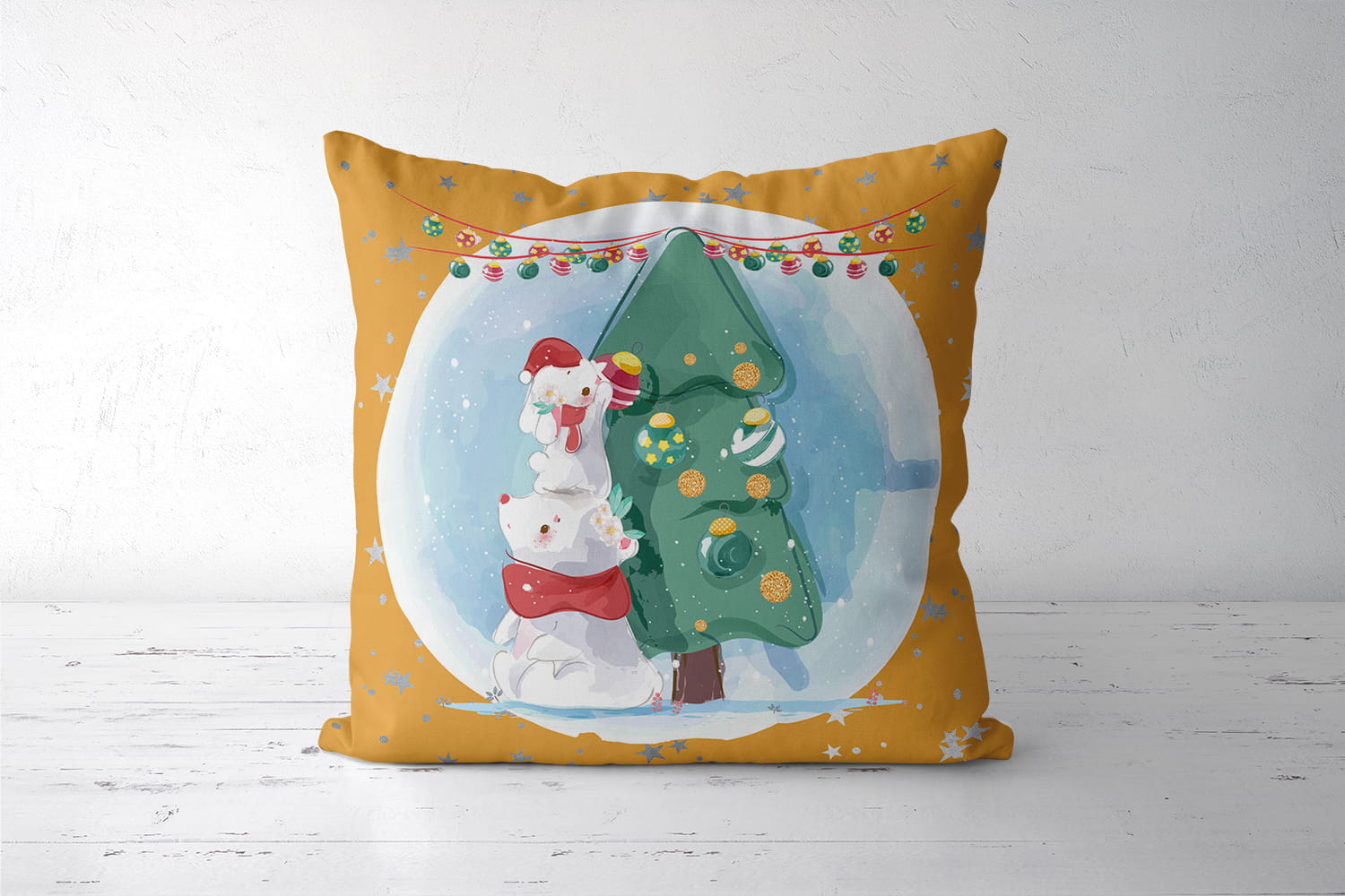 Panel poduszkowy Zwierzaki z choinką złote (żółte)