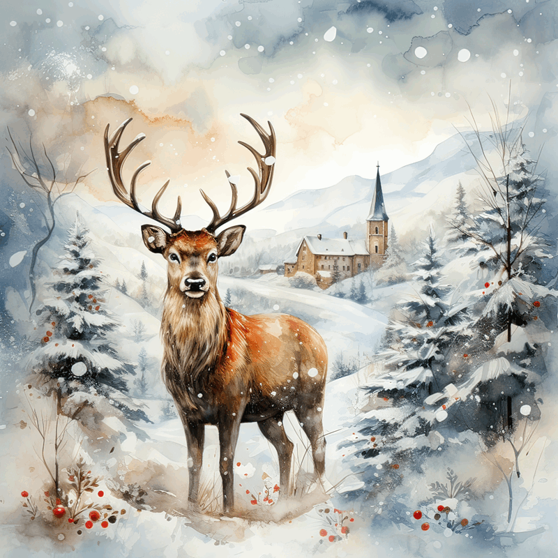 Panel poduszkowy świąteczny Zimowa akwarela jeleń
