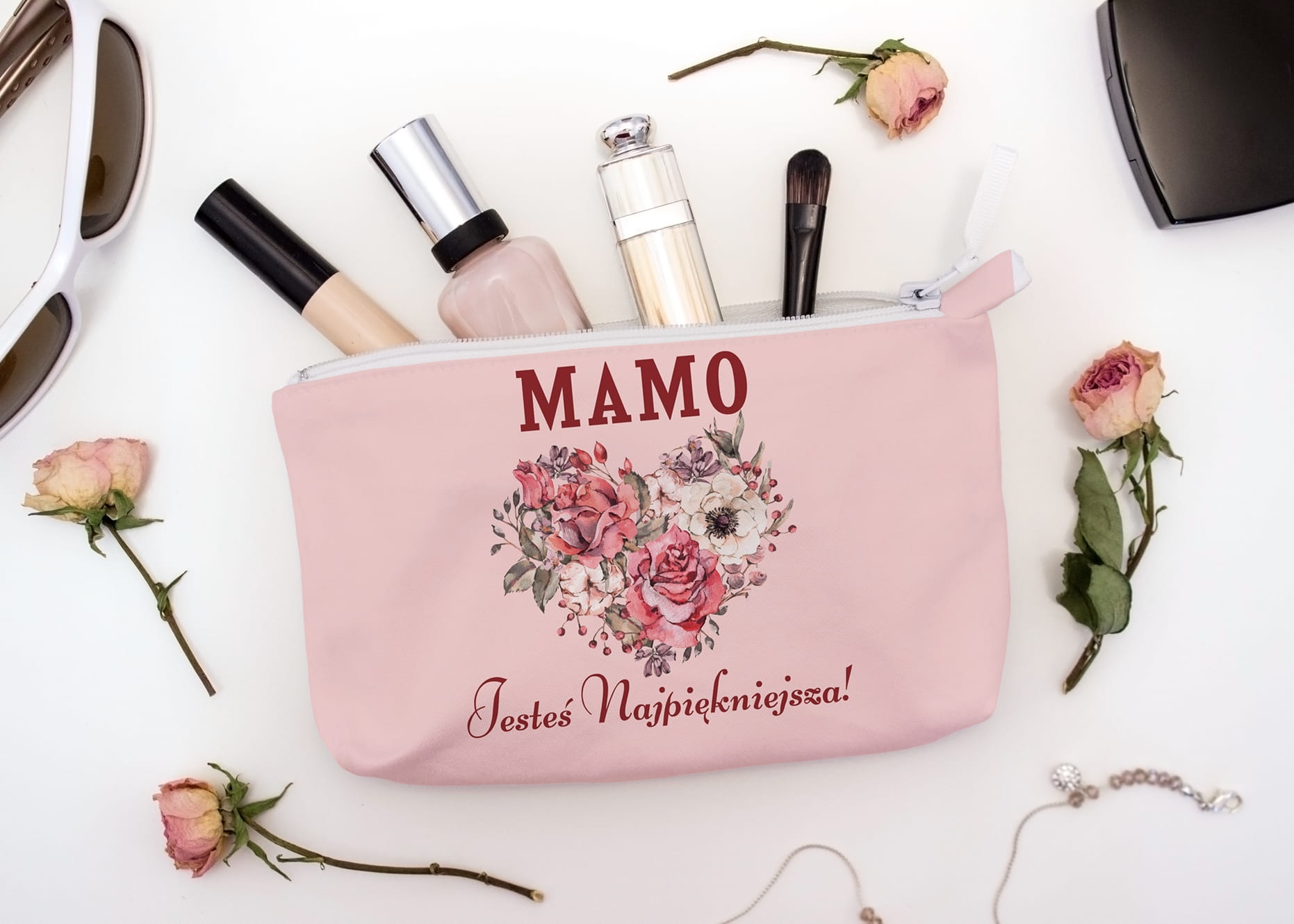 Panel- tkanina na kosmetyczkę Mamo jesteś najpiękniejsza!
