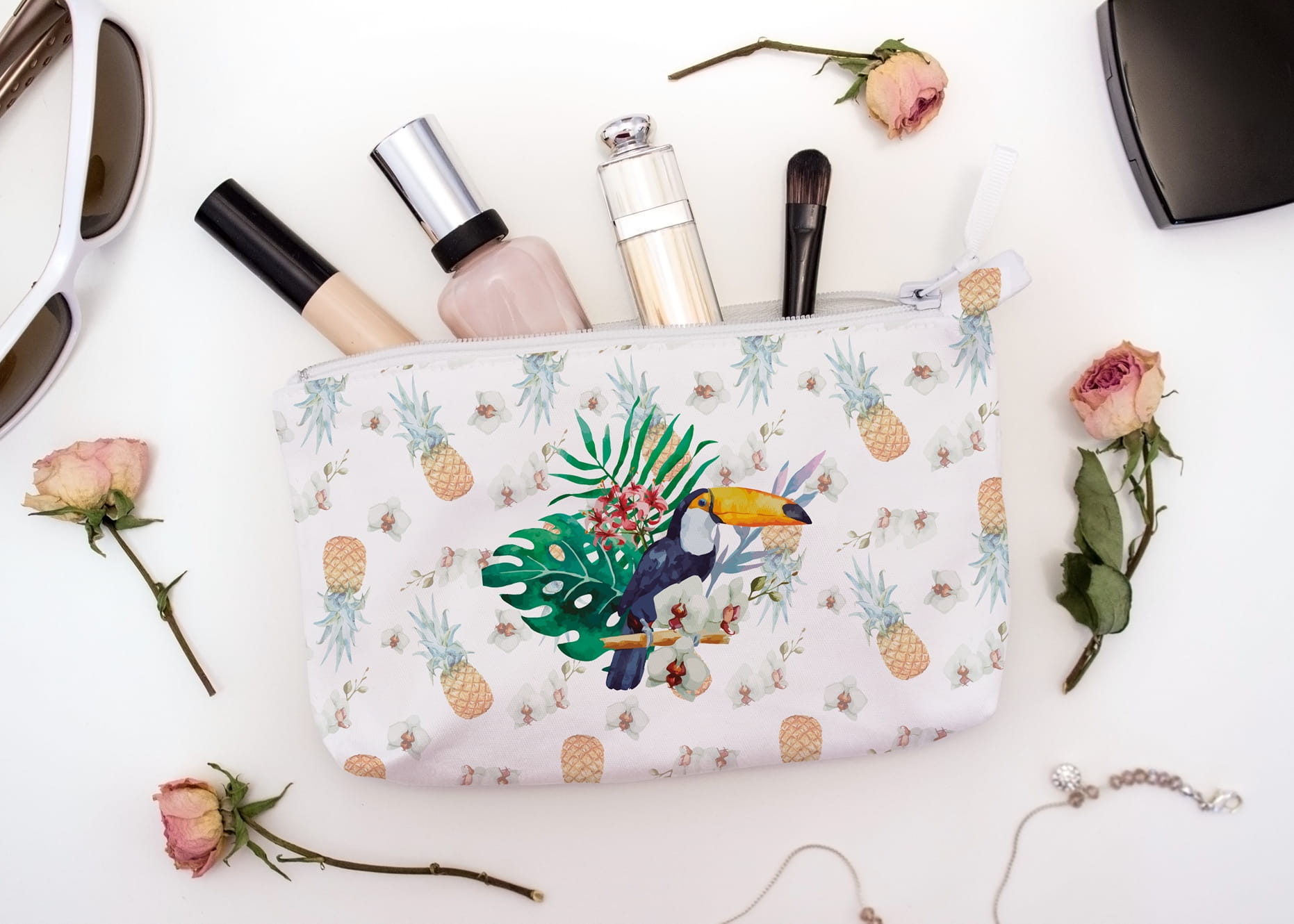 Zestaw paneli z poliestru wodoodpornego z nadrukiem cyfrowym. W zestawie panel na przód i tył kosmetyczki