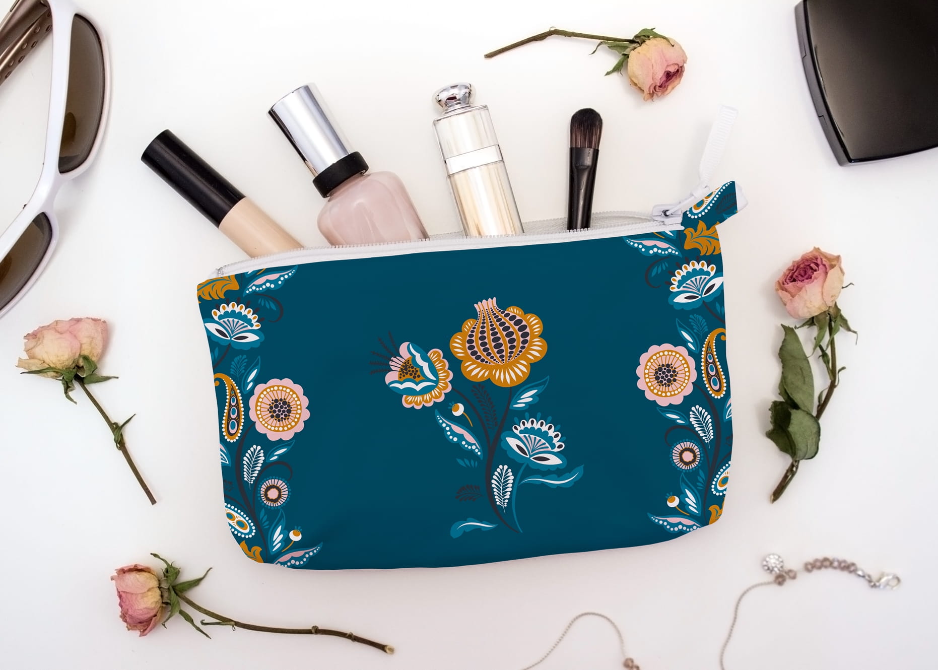 Zestaw paneli z poliestru wodoodpornego z nadrukiem cyfrowym. W zestawie panel na przód i tył kosmetyczki