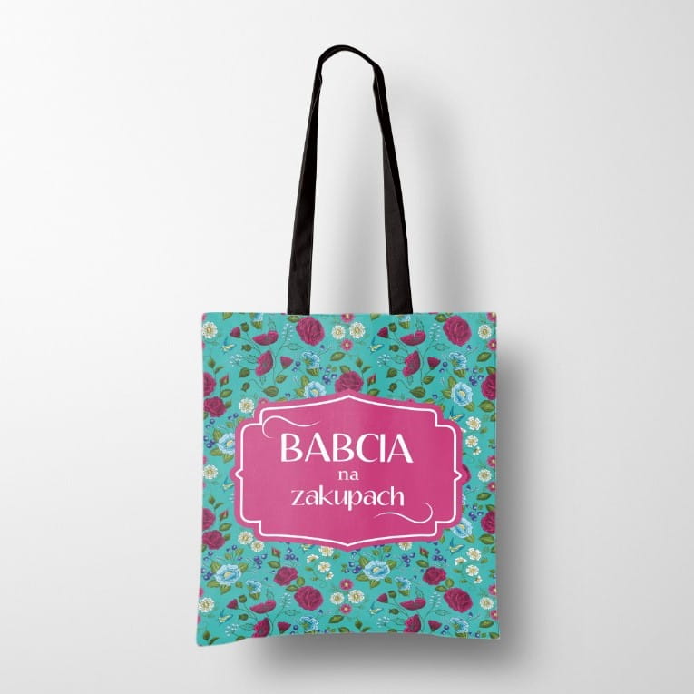 Panel - tkanina na torbę Babcia na zakupach