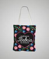 Panel - tkanina na torbę Najlepsza Babcia na świecie folk czarny serce fuksja