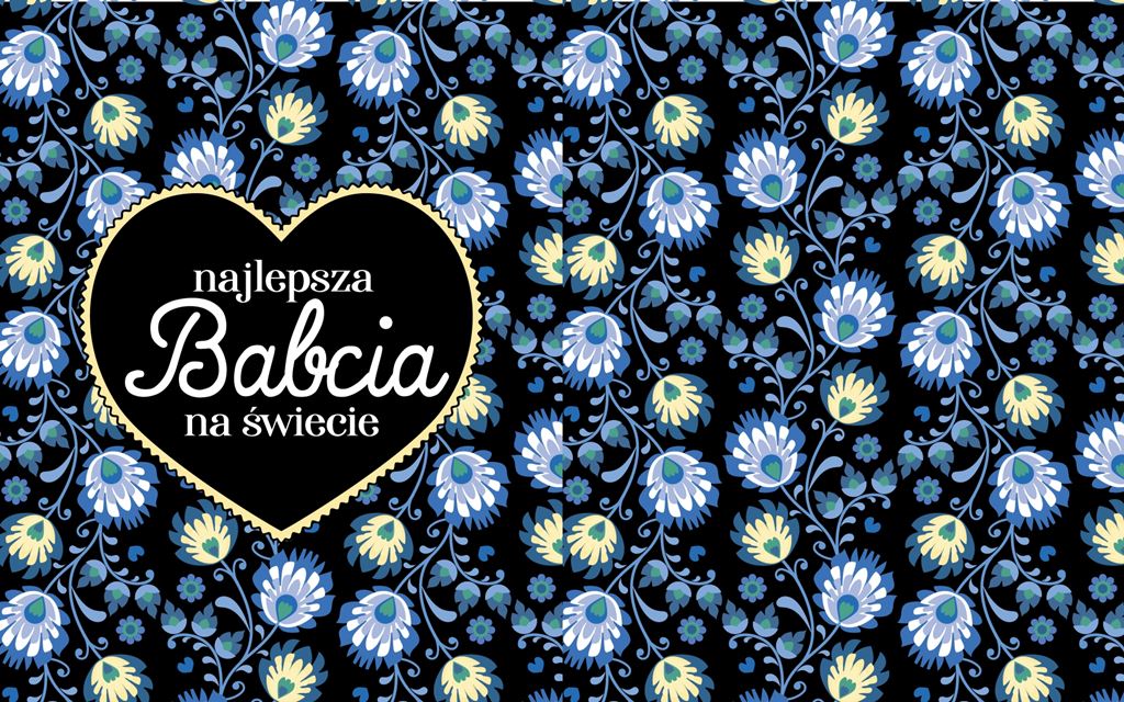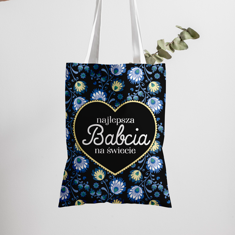 Panel - tkanina na torbę Najlepsza Babcia na świecie folk niebieski