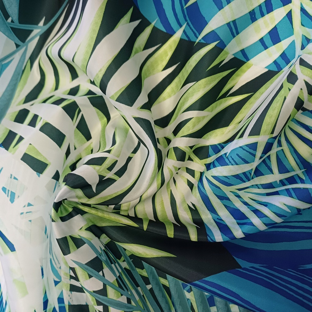 Podszewka DRUKOWANA tropikalne liście monstery palmy poliestrowa 1m
